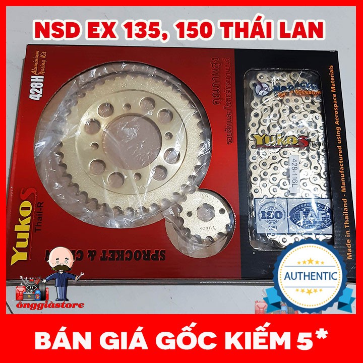 [CÓ MÃ GIẢM GIÁ] Nhông sên dĩa xe Exciter 135, 150 mạ vàng Yukos Thai-r chính hãng