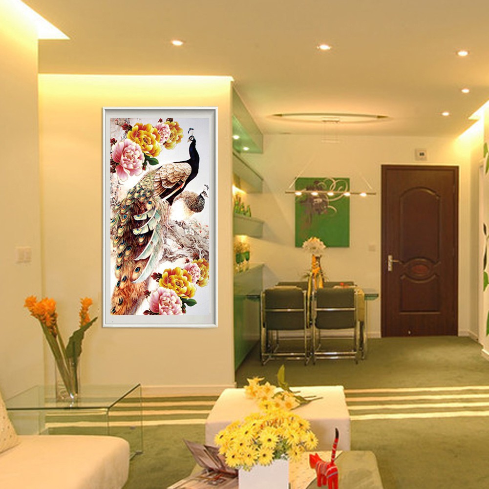 Tranh đính đá 5D hình chim công trang trí nội thất DIY free ship