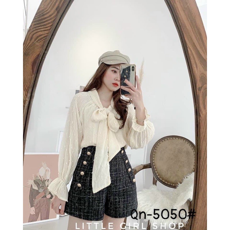 ÁO SƠ MI BI NỔI THẮT NƠ TAY BÈO TIỂU THƯ free ship