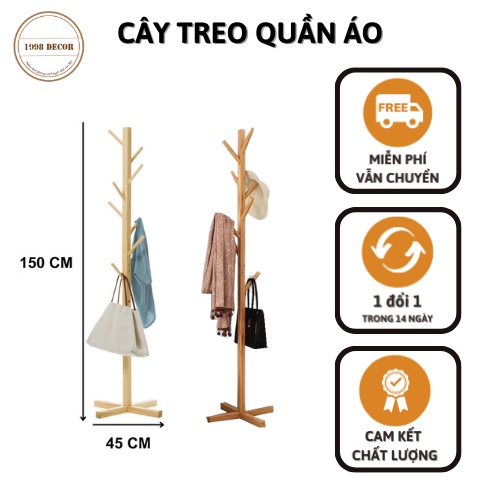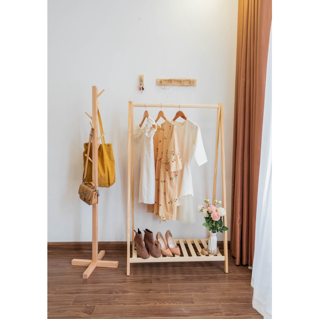 Cây Treo Quần Áo Đứng Gỗ Thông Cao Cấp - Phong Cách Bắc Âu - Nội Thất Phòng Khách, Phòng Ngủ Bảo Hành 6 Tháng free ship