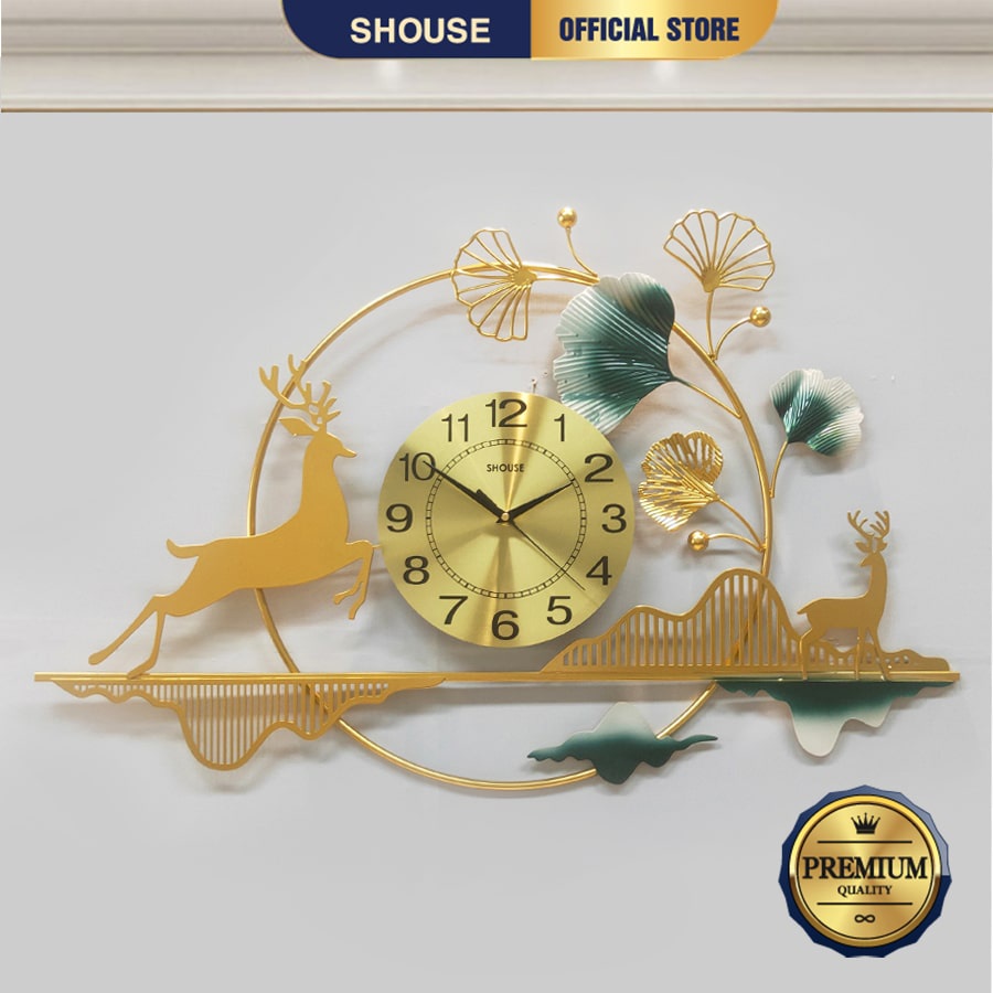 Đồng Hồ Treo Tường Trang Trí Decor SHOUSE DH11 kim trôi quartz hoa mai vàng nội thất cỡ lớn free ship