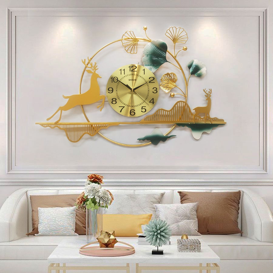 Đồng hồ treo tường hình hươu sang trọng decor phòng khách