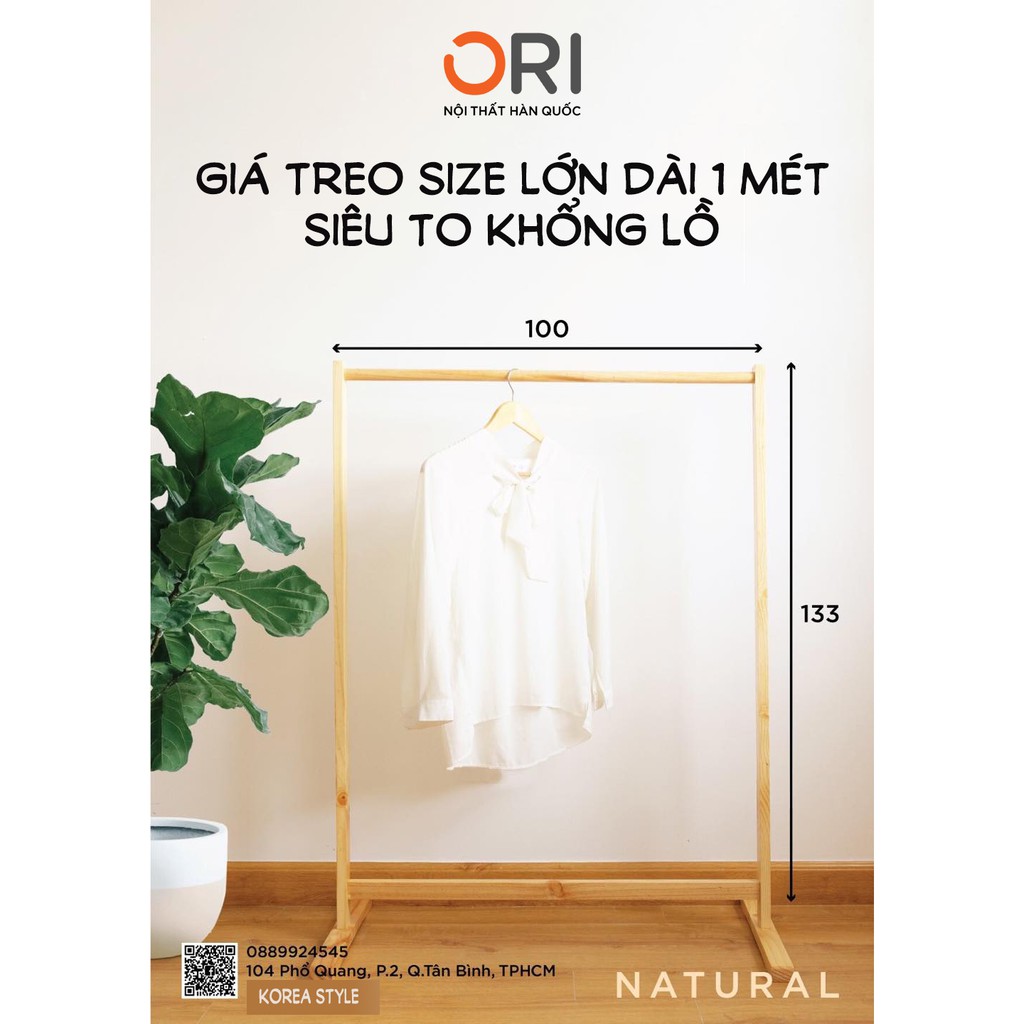 [SIZE 1M] GIÁ TREO QUẦN ÁO PHONG CÁCH HÀN QUỐC BẰNG GỖ THÔNG TỰ NHIÊN - ORI NỘI THẤT HÀN QUỐC free ship