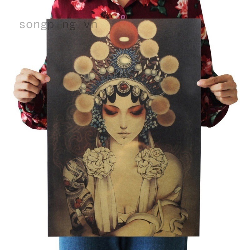 Áp phích dán tường trang trí nội thất hình cô gái Bắc Kinh kịch free ship